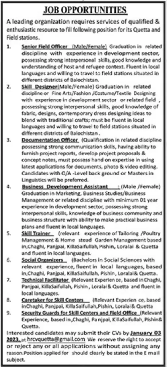 - Interested candidates May Submit Their Cv To Th ehrcvquetta@gmail.com
