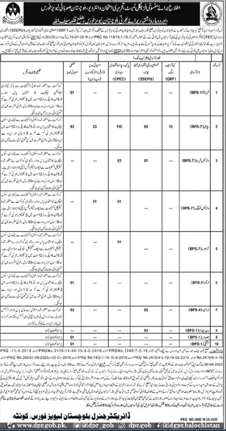 Levies Force Killa Saifullah Balochistan Jobs 2022 announce the Permanent career opportunities for the post of See Below Ad in Balochistan, Killa Saifullah for the fresh and experienced candidates on Permanent basis who have Check Advertisement degree. Posted date of this post is 17/05/2022 and the last date is 30/06/2022. if you are eligible for this job apply before due date.