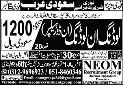 Loading And Unloading Jobs in Saudia Arabia 2025 announce the Contract career opportunities for the post of See Below Ad in Saudi Arabia for the fresh and experienced candidates on Contract basis who have Check Advertisement degree. Posted date of this post is 29/10/2025 and the last date is 30/10/2025. if you are eligible for this job apply before due date.