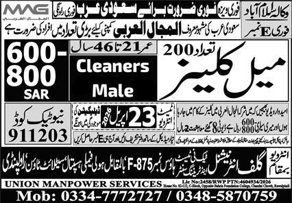 Male Cleaner Jobs Career Opportunity In Saudi Arabia 2026 announce the Contract career opportunities for the post of See Below Ad in Saudi Arabia for the fresh and experienced candidates on Contract basis who have Check Advertisement degree. Posted date of this post is 18/04/2026 and the last date is 23/04/2026. if you are eligible for this job apply before due date.