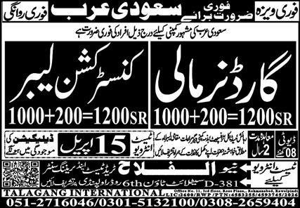 Mali & Construction Labor Jobs 2026 In Saudi Arabia announce the Contract career opportunities for the post of See Below Ad in Saudi Arabia for the fresh and experienced candidates on Contract basis who have Check Advertisement degree. Posted date of this post is 10/04/2026 and the last date is 15/04/2026. if you are eligible for this job apply before due date.