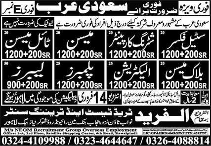 Mason And Labour Jobs in Saudia Arabia 2026 announce the Contract career opportunities for the post of See Below Ad in Saudi Arabia for the fresh and experienced candidates on Contract basis who have Check Advertisement degree. Posted date of this post is 10/02/2026 and the last date is 14/02/2026. if you are eligible for this job apply before due date.