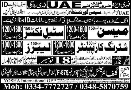 Mason And Steel Fixer Jobs in Uae 2025 announce the Contract career opportunities for the post of See Below Ad in United Arab Emirates for the fresh and experienced candidates on Contract basis who have Check Advertisement degree. Posted date of this post is 14/11/2025 and the last date is 18/11/2025. if you are eligible for this job apply before due date.