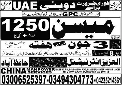 Mason Jobs In Dubai 2023 announce the Contract career opportunities for the post of See Below Ad in Dubai for the fresh and experienced candidates on Contract basis who have Check Advertisement degree. Posted date of this post is 31/05/2023 and the last date is 03/06/2023. if you are eligible for this job apply before due date.