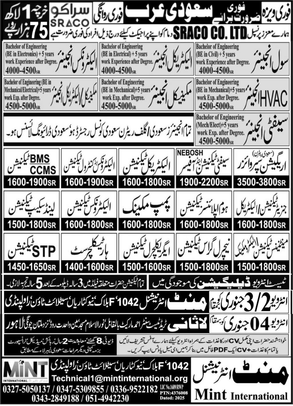 Mechanical engineering and pump Mechanic Jobs in Ksa 2025 announce the Contract career opportunities for the post of See Below Ad in Saudi Arabia for the fresh and experienced candidates on Contract basis who have Check Advertisement degree. Posted date of this post is 29/12/2025 and the last date is 04/01/2026. if you are eligible for this job apply before due date.
