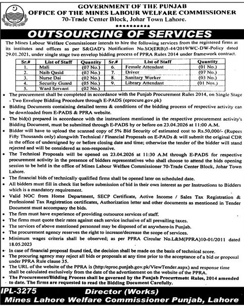 Mines Labour Welfare Commissioner Jobs 2026 announce the Contract career opportunities for the post of See Below Ad in Punjab, Lahore for the fresh and experienced candidates on Contract basis who have Check Advertisement degree. Posted date of this post is 05/04/2026 and the last date is 23/04/2026. if you are eligible for this job apply before due date.