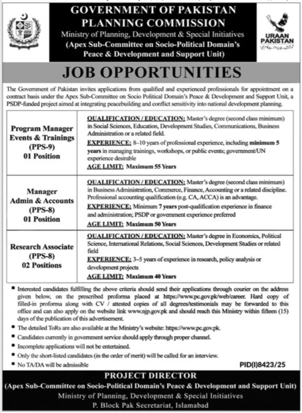 Ministry Of Planning Development And Special Initiative Jobs announce the Contract career opportunities for the post of See Below Ad in Federal, Islamabad for the fresh and experienced candidates on Contract basis who have Check Advertisement degree. Posted date of this post is 17/04/2026 and the last date is 02/05/2026. if you are eligible for this job apply before due date.