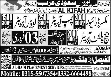 Mixer Driver & Loader Operator Jobs 2026 In Saudi Arabia announce the Contract career opportunities for the post of See Below Ad in Saudi Arabia for the fresh and experienced candidates on Contract basis who have Check Advertisement degree. Posted date of this post is 31/01/2026 and the last date is 03/02/2026. if you are eligible for this job apply before due date.