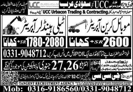 Mobile Crane Operator And Tele Hander Jobs in Ksa 2026 announce the Contract career opportunities for the post of See Below Ad in Saudi Arabia for the fresh and experienced candidates on Contract basis who have Check Advertisement degree. Posted date of this post is 20/01/2026 and the last date is 27/01/2026. if you are eligible for this job apply before due date.