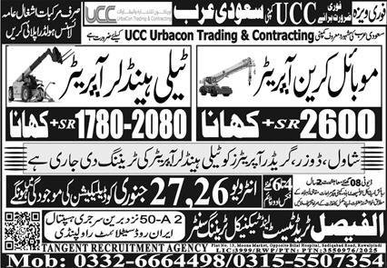 Mobile Crane Operator & Telehandler Operator Jobs 2026 announce the Contract career opportunities for the post of See Below Ad in Saudi Arabia for the fresh and experienced candidates on Contract basis who have Check Advertisement degree. Posted date of this post is 22/01/2026 and the last date is 27/01/2026. if you are eligible for this job apply before due date.