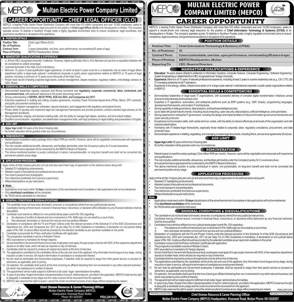 Multan Electric Power Company MEPCO Jobs 2026 announce the Contract career opportunities for the post of See Below Ad in Punjab, Multan for the fresh and experienced candidates on Contract basis who have Check Advertisement degree. Posted date of this post is 17/04/2026 and the last date is 01/05/2026. if you are eligible for this job apply before due date.