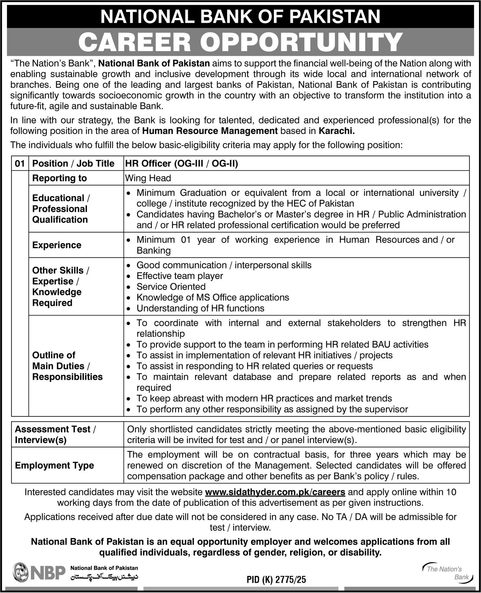 National Bank of Pakistan NBP Karachi Jobs 2026 announce the Contract career opportunities for the post of See Below Ad in Sindh, Karachi for the fresh and experienced candidates on Contract basis who have Check Advertisement degree. Posted date of this post is 15/02/2026 and the last date is 27/02/2026. if you are eligible for this job apply before due date.