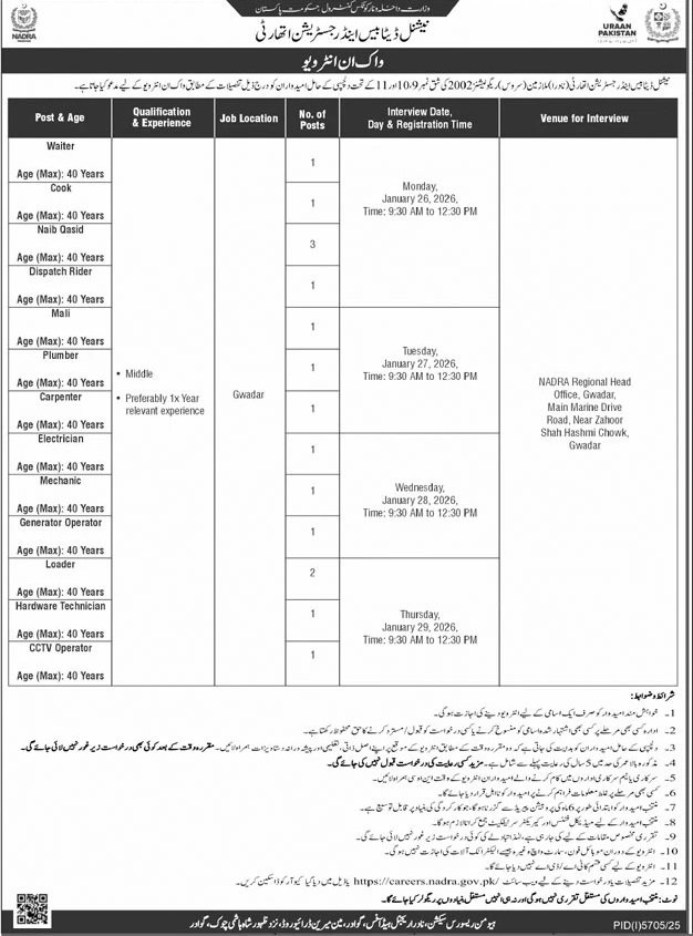 Human Resource Section, NADRA Regional Head Office, Gwadar, Main Marine Drive Road, Near Zahoor Shah Hashmi Chowk, Gwadar.