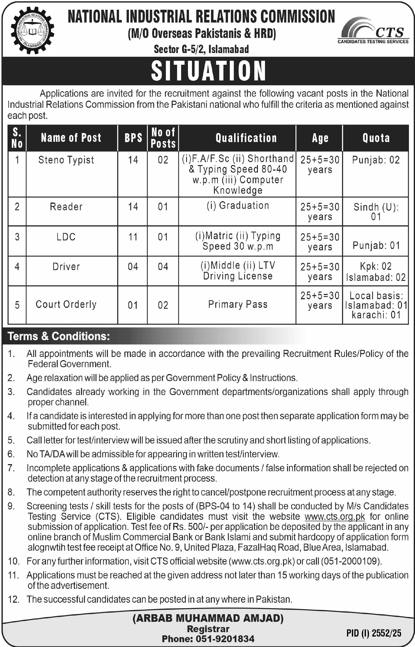 National Industrial Relations Commission Islamabad Jobs 2025 announce the Contract career opportunities for the post of See Below Ad in Federal, Islamabad for the fresh and experienced candidates on Contract basis who have Check Advertisement degree. Posted date of this post is 28/09/2025 and the last date is 13/10/2025. if you are eligible for this job apply before due date.