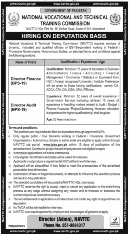 National Vocational & Technical Training Commission Jobs announce the Contract career opportunities for the post of See Below Ad in Federal, Islamabad for the fresh and experienced candidates on Contract basis who have Check Advertisement degree. Posted date of this post is 12/02/2026 and the last date is 27/02/2026. if you are eligible for this job apply before due date.
