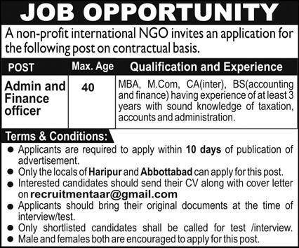 Non Governmental Organization NGO Abbottabad Jobs2026 announce the Contract career opportunities for the post of See Below Ad in Khyber Pakhtunkhwa, Abbottabad for the fresh and experienced candidates on Contract basis who have Check Advertisement degree. Posted date of this post is 29/01/2026 and the last date is 09/02/2026. if you are eligible for this job apply before due date.
