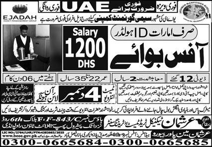 Office Boy Jobs in United Arab Emerities UAE 2025 announce the Contract career opportunities for the post of See Below Ad in United Arab Emirates for the fresh and experienced candidates on Contract basis who have Check Advertisement degree. Posted date of this post is 27/11/2025 and the last date is 04/12/2025. if you are eligible for this job apply before due date.