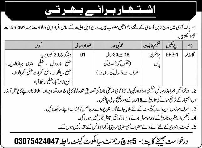 Pak Army 5 Regiment Baloch Cantt Jobs 2026 For Gardener announce the Contract career opportunities for the post of See Below Ad in Punjab, Sialkot for the fresh and experienced candidates on Contract basis who have Check Advertisement degree. Posted date of this post is 10/03/2026 and the last date is 25/03/2026. if you are eligible for this job apply before due date.
