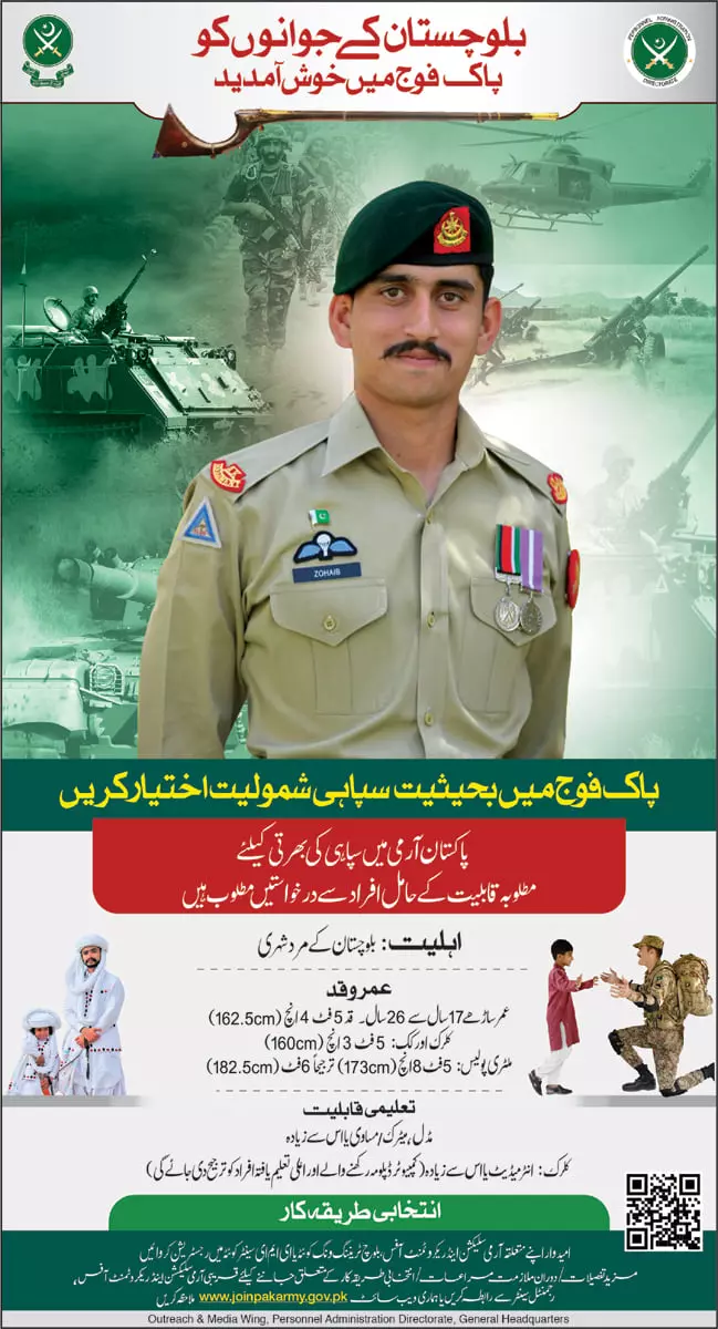 Pak Army Sipahi Jobs 2022 Balochistan announce the Permanent career opportunities for the post of See Below Ad in Balochistan for the fresh and experienced candidates on Permanent basis who have Check Advertisement degree. Posted date of this post is 03/04/2022 and the last date is 30/04/2022. if you are eligible for this job apply before due date.