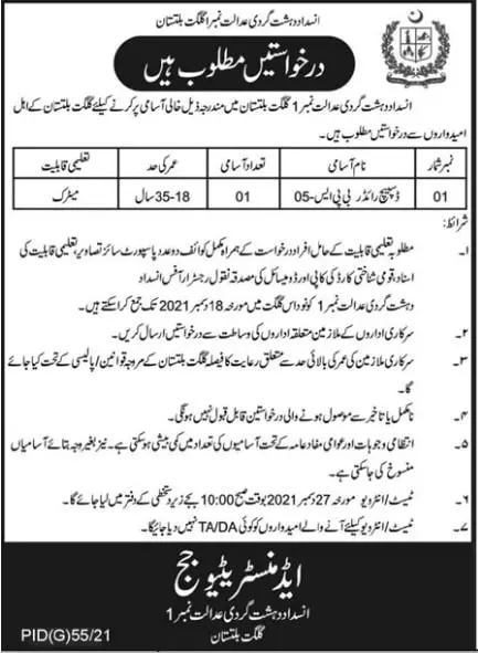 Pakistan Counter Terrorism Department Gilgit Baltistan Jobs announce the Permanent career opportunities for the post of See Below Ad in Gilgit Baltistan for the fresh and experienced candidates on Permanent basis who have Check Advertisement degree. Posted date of this post is 03/12/2021 and the last date is 18/12/2021. if you are eligible for this job apply before due date.