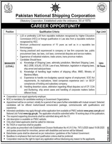 Pakistan National Shipping Corporation PNSC Karachi Job announce the Contract career opportunities for the post of See Below Ad in Sindh, Karachi for the fresh and experienced candidates on Contract basis who have Check Advertisement degree. Posted date of this post is 01/03/2026 and the last date is 17/03/2026. if you are eligible for this job apply before due date.