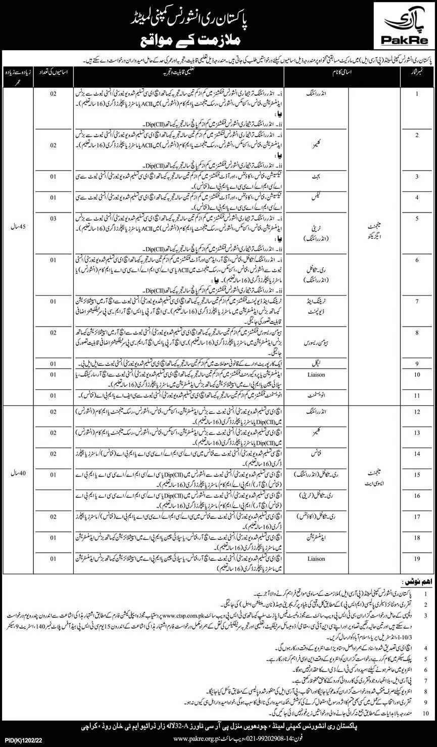 Pakistan Reinsurance Company Limited Jobs 2022 announce the Contract career opportunities for the post of See Below Ad in Sindh, Karachi for the fresh and experienced candidates on Contract basis who have Graduation degree. Posted date of this post is 05/11/2022 and the last date is 20/11/2022. if you are eligible for this job apply before due date.