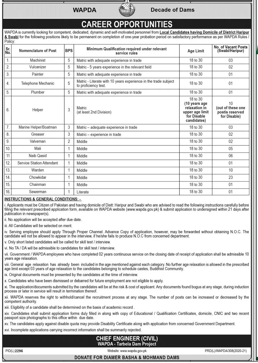 Pakistan Water & Power Development Authority WAPDA Jobs Kpk announce the Permanent career opportunities for the post of See Below Ad in Khyber Pakhtunkhwa,Peshawar for the fresh and experienced candidates on Permanent basis who have Check Advertisement degree. Posted date of this post is 18/02/2021 and the last date is 11/03/2021. if you are eligible for this job apply before due date.