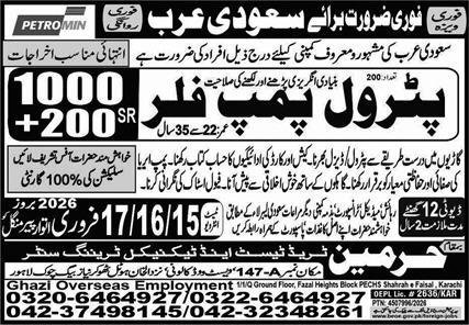 Petrol Pump Filler Jobs in Saudia Arabia 2026 announce the Contract career opportunities for the post of See Below Ad in Saudi Arabia for the fresh and experienced candidates on Contract basis who have Check Advertisement degree. Posted date of this post is 10/02/2026 and the last date is 17/02/2026. if you are eligible for this job apply before due date.
