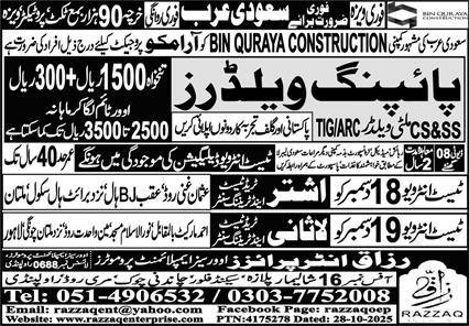 Piping Welder & TIG Welder Jobs 2026 In Saudi Arabia announce the Contract career opportunities for the post of See Below Ad in Saudi Arabia for the fresh and experienced candidates on Contract basis who have Check Advertisement degree. Posted date of this post is 18/12/2025 and the last date is 19/12/2025. if you are eligible for this job apply before due date.