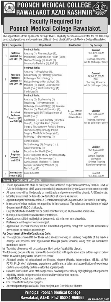 Poonch Medical College Rawalakot Azad Jammu kashimrJobs 2026 announce the Contract career opportunities for the post of See Below Ad in Azad Jammu Kashmir, Muzaffarabad for the fresh and experienced candidates on Contract basis who have Check Advertisement degree. Posted date of this post is 13/02/2026 and the last date is 27/02/2026. if you are eligible for this job apply before due date.