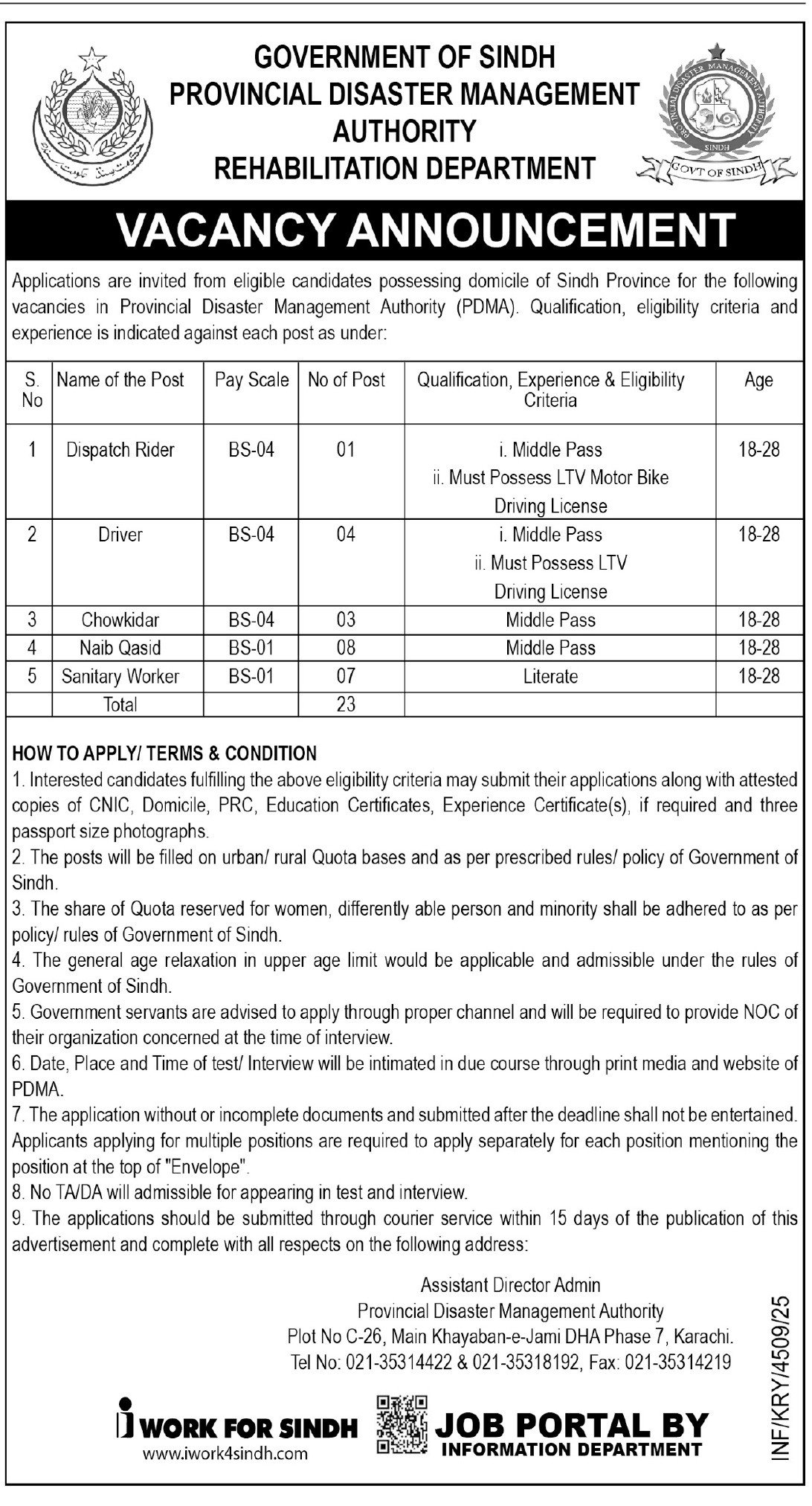 Provincial Disaster Management Authority PDMA Jobs 2026 announce the Contract career opportunities for the post of See Below Ad in Punjab, Lahore for the fresh and experienced candidates on Contract basis who have Check Advertisement degree. Posted date of this post is 27/12/2025 and the last date is 10/01/2026. if you are eligible for this job apply before due date.