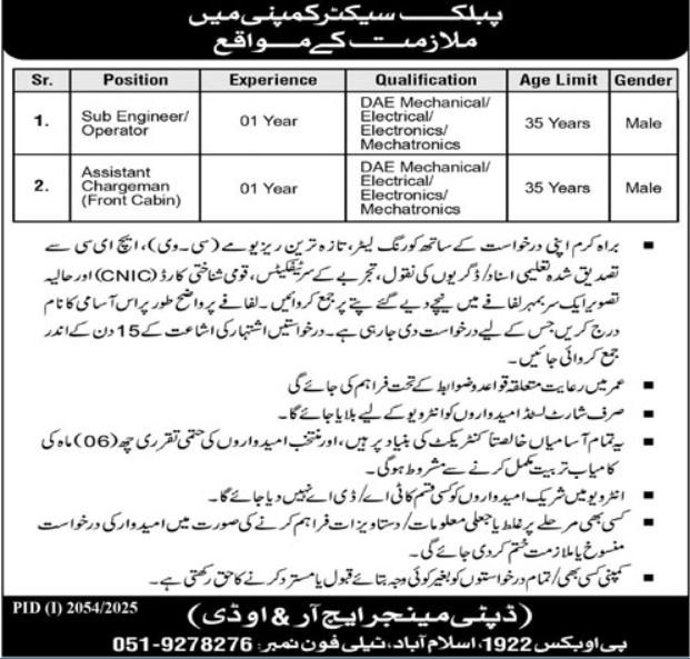 Public Sector Company Islamabad Jobs 2025 announce the Contract career opportunities for the post of See Below Ad in Federal, Islamabad for the fresh and experienced candidates on Contract basis who have Check Advertisement degree. Posted date of this post is 11/09/2025 and the last date is 26/09/2025. if you are eligible for this job apply before due date.