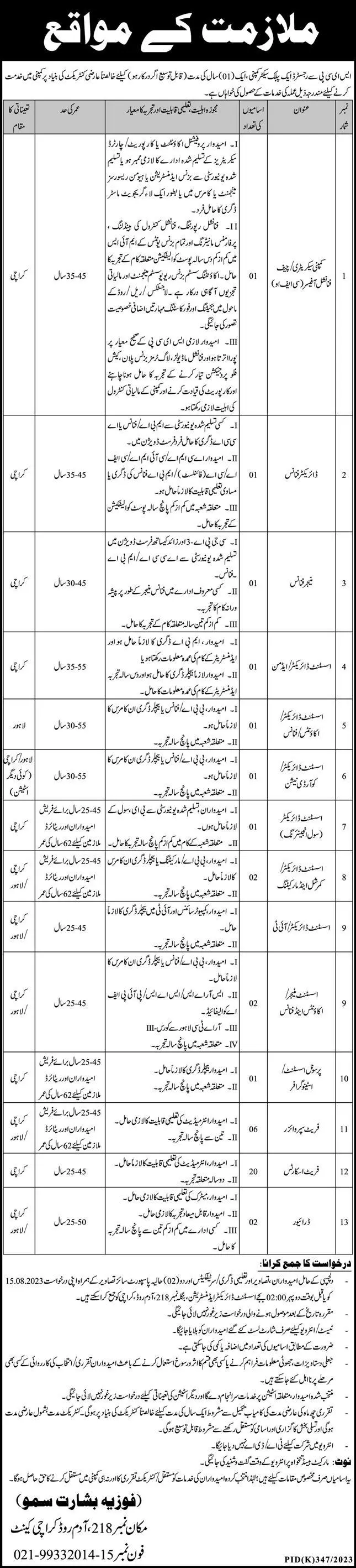 Public Sector Company Karachi Sindh Jobs 2023 announce the Contract career opportunities for the post of See Below Ad in Sindh, Karachi for the fresh and experienced candidates on Contract basis who have Check Advertisement degree. Posted date of this post is 05/08/2023 and the last date is 15/08/2023. if you are eligible for this job apply before due date.