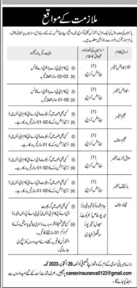 Public Sector Insurance Company Karachi Jobs 2023 announce the Contract career opportunities for the post of See Below Ad in Sindh, Karachi for the fresh and experienced candidates on Contract basis who have Check Advertisement degree. Posted date of this post is 15/10/2023 and the last date is 29/10/2023. if you are eligible for this job apply before due date.