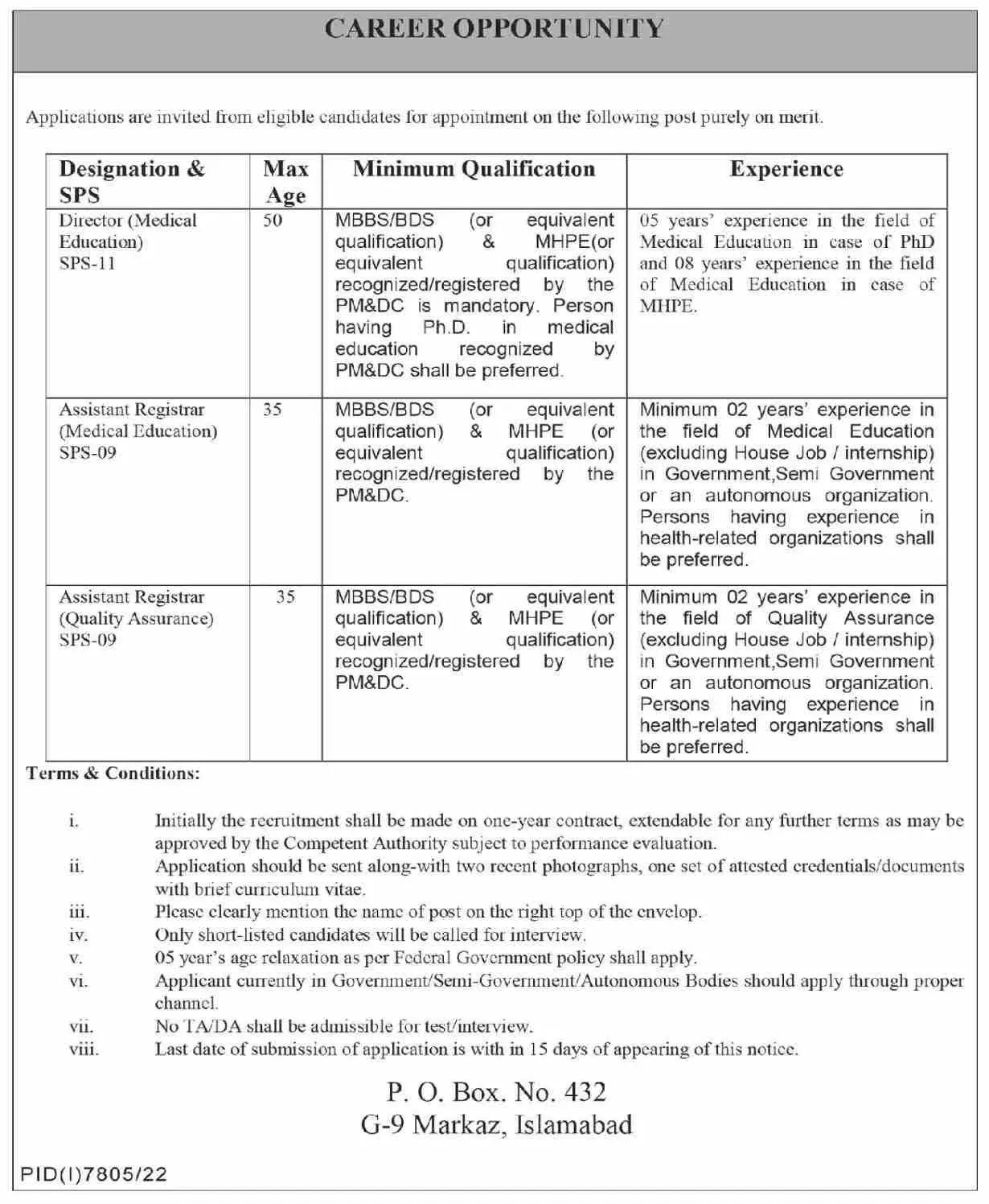 Public Sector Organization Islamabad Jobs 2023 announce the Contract career opportunities for the post of See Below Ad in Federal, Islamabad for the fresh and experienced candidates on Contract basis who have Check Advertisement degree. Posted date of this post is 16/06/2023 and the last date is 01/07/2023. if you are eligible for this job apply before due date.