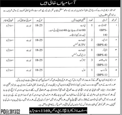 Public Sector Organization Islamabad Jobs 2023 announce the Contract career opportunities for the post of See Below Ad in Federal,Islamabad for the fresh and experienced candidates on Contract basis who have Check Advertisement degree. Posted date of this post is 18/12/2022 and the last date is 17/01/2023. if you are eligible for this job apply before due date.