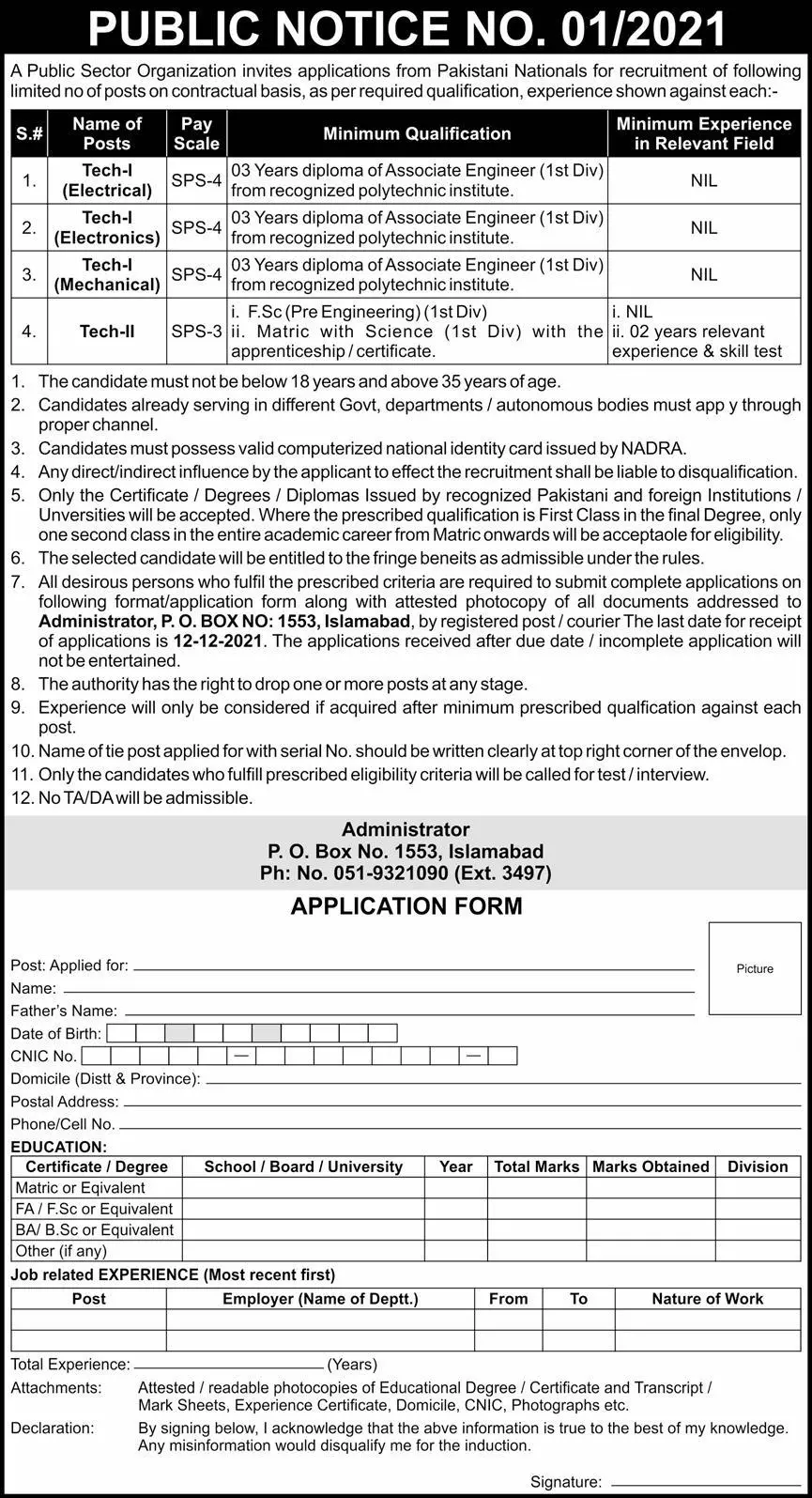 Public Sector Organization Islamabad Jobs