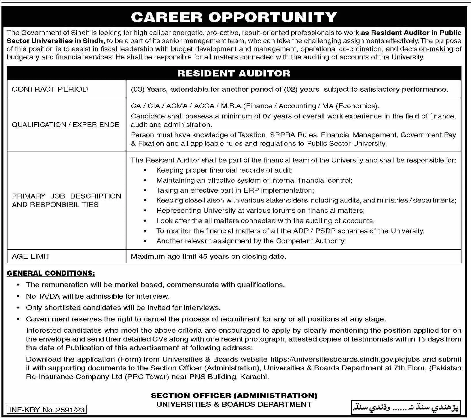 Public Sector Universities Sindh Jobs 2023 announce the Contract career opportunities for the post of See Below Ad in Sindh, Karachi for the fresh and experienced candidates on Contract basis who have Check Advertisement degree. Posted date of this post is 24/06/2023 and the last date is 09/07/2023. if you are eligible for this job apply before due date.