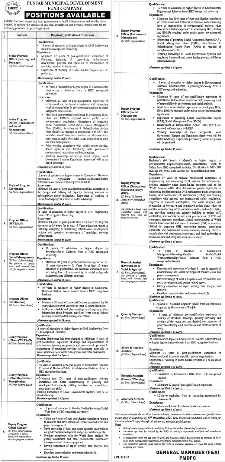 Punjab Muncipal Development Fund Company Jobs 2025 announce the Contract career opportunities for the post of See Below Ad in Punjab, Lahore for the fresh and experienced candidates on Contract basis who have Check Advertisement degree. Posted date of this post is 28/11/2025 and the last date is 13/12/2025. if you are eligible for this job apply before due date.