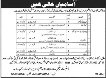 Quaid e Azam Industrial Estate Jobs 2022 announce the Permanent career opportunities for the post of See Below Ad in Punjab, Lahore for the fresh and experienced candidates on Permanent basis who have Check Advertisement degree. Posted date of this post is 03/09/2022 and the last date is 19/09/2022. if you are eligible for this job apply before due date.