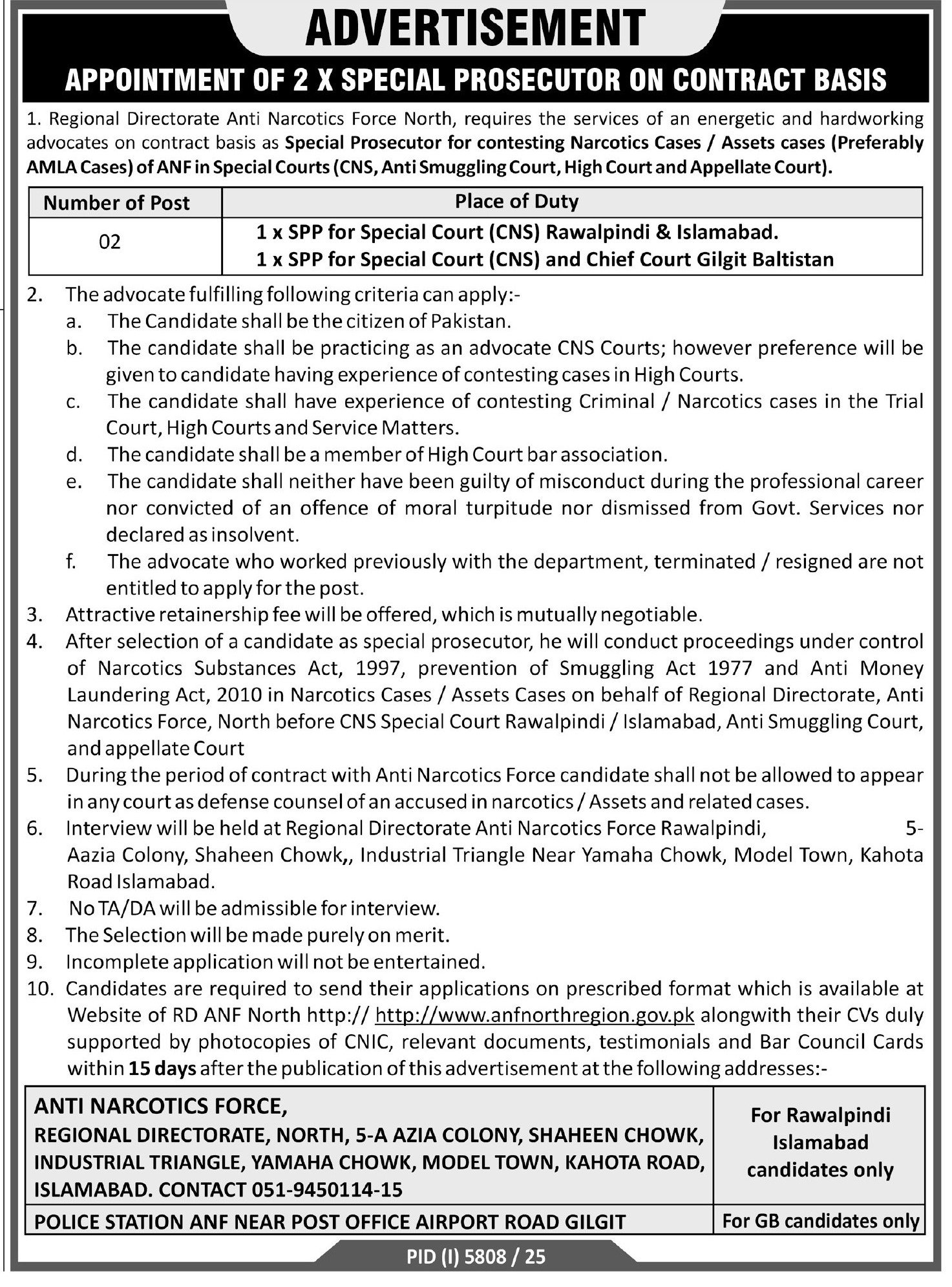 Regional Directorate Anti Narcotics Force ANF Jobs 2026 announce the Contract career opportunities for the post of See Below Ad in Federal, Islamabad for the fresh and experienced candidates on Contract basis who have Check Advertisement degree. Posted date of this post is 16/01/2026 and the last date is 30/01/2026. if you are eligible for this job apply before due date.