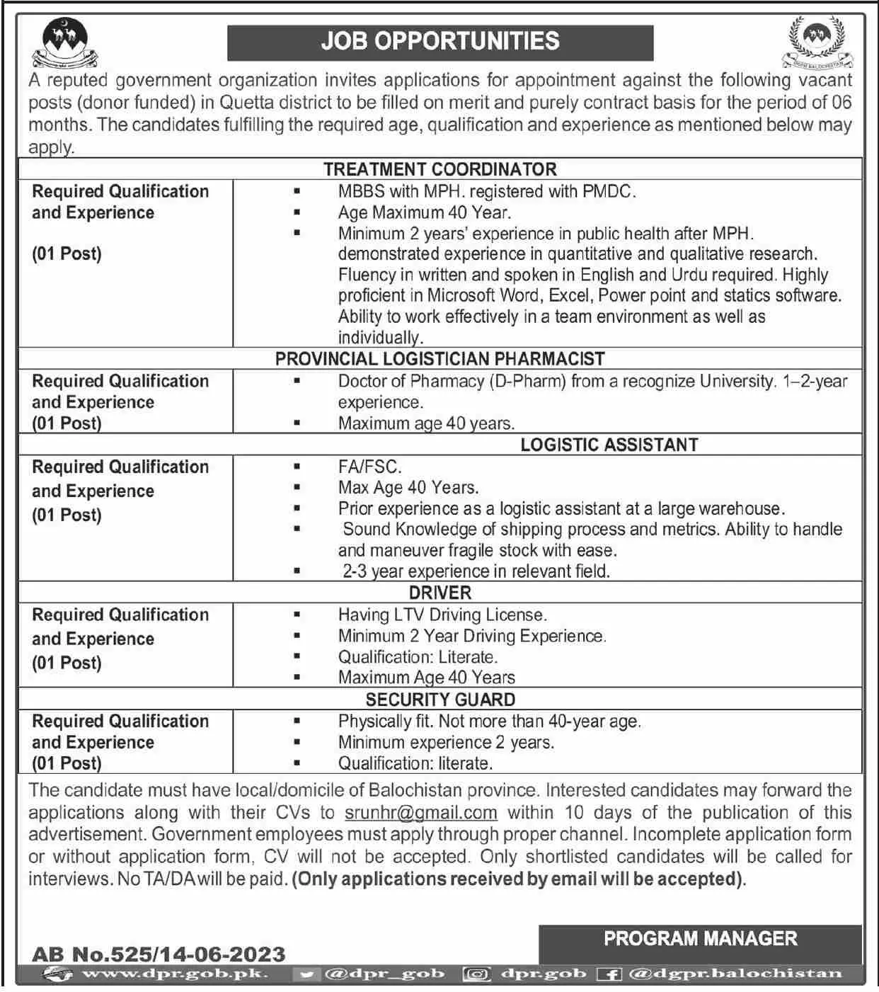 Reputed Government Organization Quetta Balochistan Jobs 2023