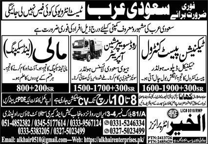 Road Sweeper And Mali Jobs in Saudia Arabia 2026 announce the Contract career opportunities for the post of See Below Ad in Saudi Arabia for the fresh and experienced candidates on Contract basis who have Check Advertisement degree. Posted date of this post is 08/03/2026 and the last date is 10/03/2026. if you are eligible for this job apply before due date.