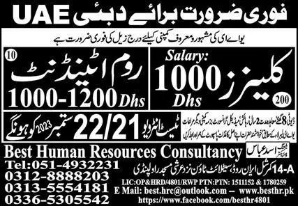 Room attendant and cleaner Jobs in DubaI 2023 announce the Contract career opportunities for the post of See Below Ad in Dubai for the fresh and experienced candidates on Contract basis who have Check Advertisement degree. Posted date of this post is 16/09/2023 and the last date is 22/09/2023. if you are eligible for this job apply before due date.