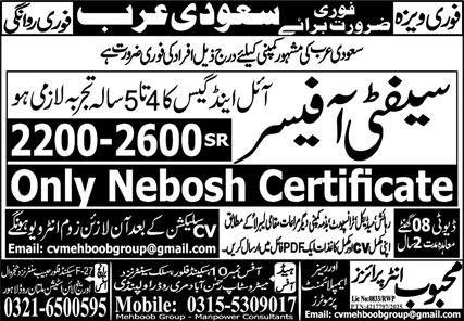 Safety Officer Jobs in Saudia Arabia 2026 announce the Contract career opportunities for the post of See Below Ad in Saudi Arabia for the fresh and experienced candidates on Contract basis who have Check Advertisement degree. Posted date of this post is 09/01/2026 and the last date is 16/01/2026. if you are eligible for this job apply before due date.