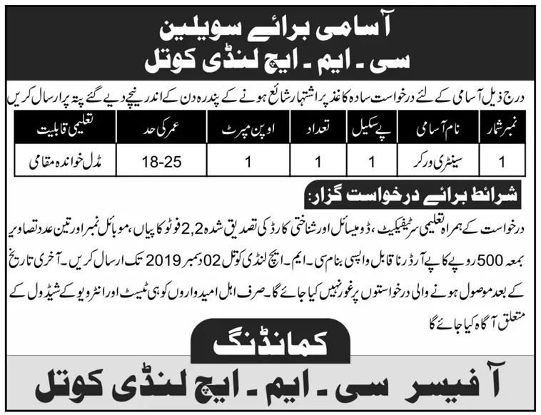 Combined Military Hospital CMH Sialkot Jobs 2025