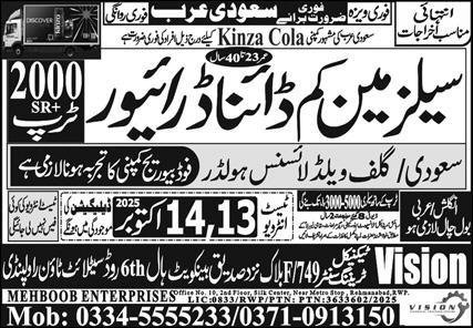 Saleman Kam Dina Driver Jobs in Saudia Arabia 2025 announce the Contract career opportunities for the post of See Below Ad in Saudi Arabia for the fresh and experienced candidates on Contract basis who have Check Advertisement degree. Posted date of this post is 06/10/2025 and the last date is 14/10/2025. if you are eligible for this job apply before due date.