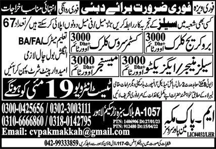 Sales Executive & Customer Service Clerk Jobs 2023 In Dubai announce the Contract career opportunities for the post of See Below Ad in Dubai for the fresh and experienced candidates on Contract basis who have Check Advertisement degree. Posted date of this post is 16/05/2023 and the last date is 19/05/2023. if you are eligible for this job apply before due date.