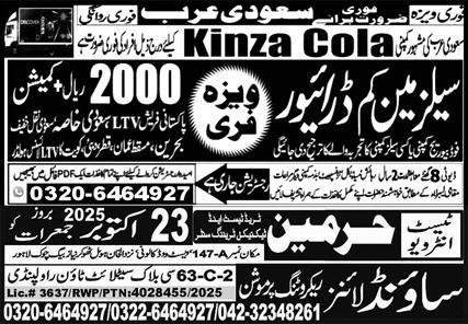 Salesman Cum Driver Jobs 2025 In Saudi Arabia announce the Contract career opportunities for the post of See Below Ad in Saudi Arabia for the fresh and experienced candidates on Contract basis who have Check Advertisement degree. Posted date of this post is 21/10/2025 and the last date is 23/10/2025. if you are eligible for this job apply before due date.
