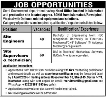 Sami Government Department Jobs 2026 announce the Contract career opportunities for the post of See Below Ad in Punjab, Rawalpindi for the fresh and experienced candidates on Contract basis who have Check Advertisement degree. Posted date of this post is 07/04/2026 and the last date is 09/05/2026. if you are eligible for this job apply before due date.